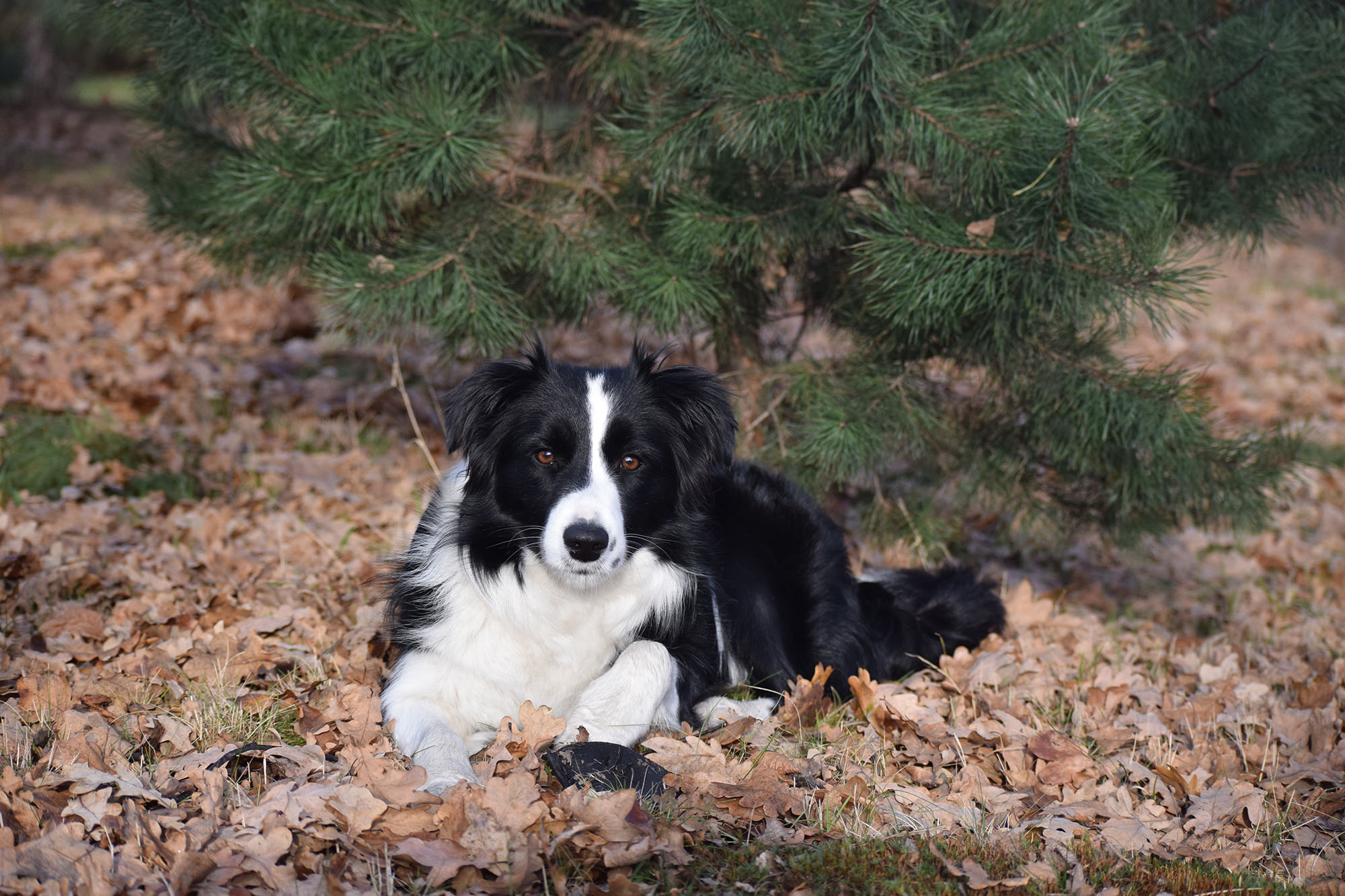 Hebe jest jedną z dwóch dziewczyn, które zostały z nami po ostatnim miocie naszej Suzi. Ma ładną, stosunkowo mocną, atletyczną lecz nie ciężką sylwetkę. Piękny lśniący i gładki włos. Najważniejsze jednak i najbardziej zaskakujące jest jej usposobienie. Od samego początku był to niezwykle mądry i rozważny szczeniak, który na tle rozbrykanego rodzeństwa sprawiał wrażenie jakby była takim „starym malutkim”. Jej stabilne usposobienie rokuje pozytywnie dla pracy psa terapeutycznego, do której będzie przygotowywana. Ma silny i zdecydowany charakter ale jest bardzo chętna do współpracy z człowiekiem. Dodatkowo ma wyjątkową jak na młodego bordera zdolność wyciszenia się. Jest towarzyszem, który nieustannie i wiernie podąża za swoim ukochanym człowiekiem. Uwielbia pieszczoty i bardzo dobrze funkcjonuje w kontakcie z dziećmi. Jest delikatna i spokojna, świetnie funkcjonuje jako pies towarzyszący jednak nie jest to pies, który osiągałby wybitne sukcesy w sporcie.